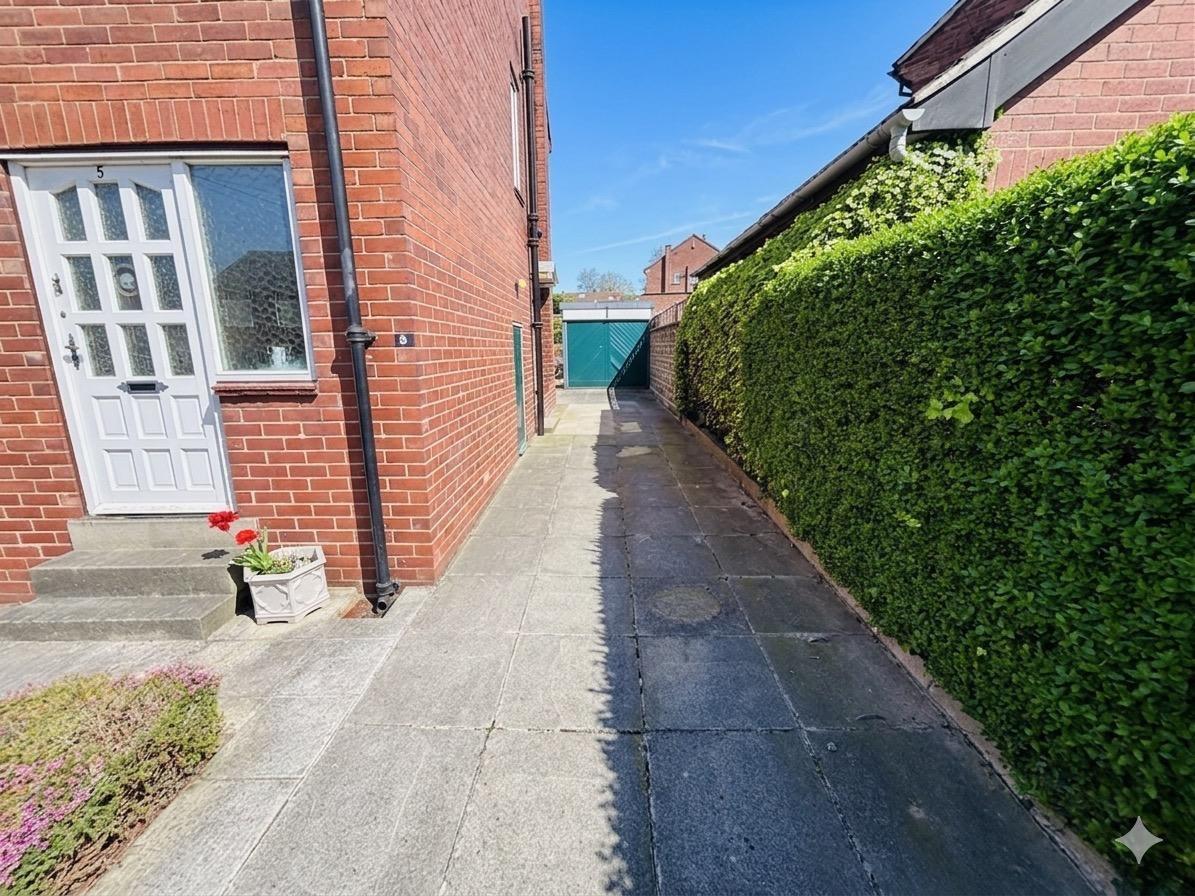 Wrought iron gates give access to a good sized DRIVEWAY which provides useful OFF STREET PARKING and access to the SINGLE DETACHED GARAGE.