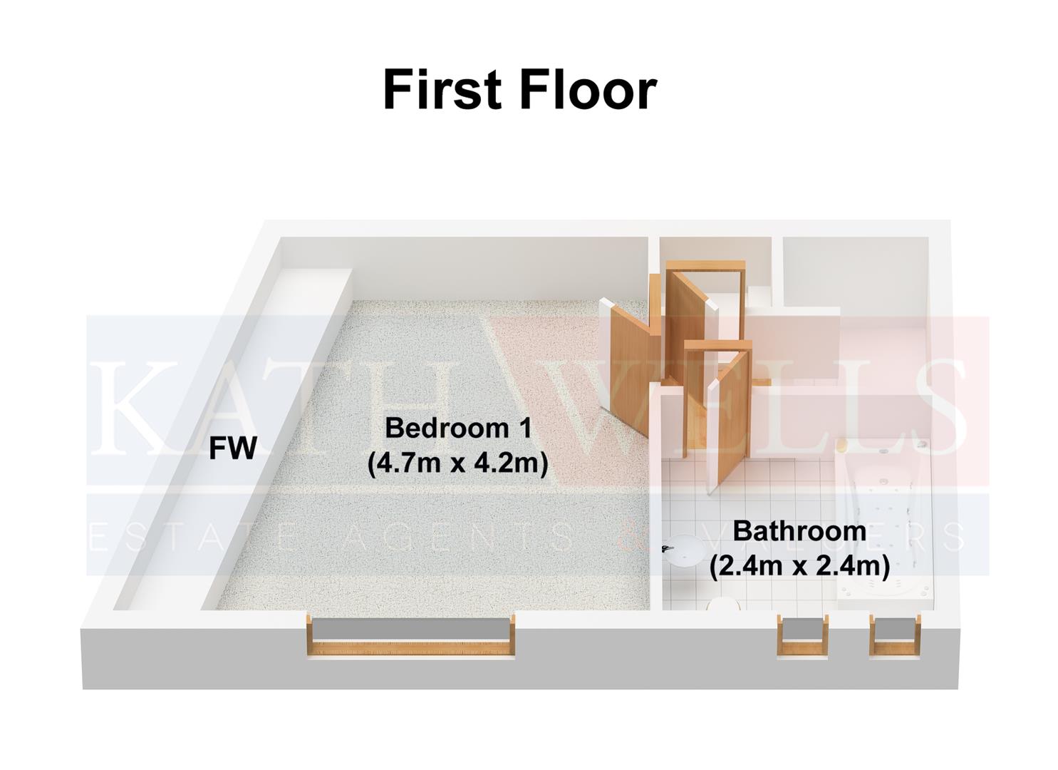 To the FIRST FLOOR there is a LARGE DOUBLE BEDROOM with ample space for bedroom furniture and a BATHROOM / WC with a white suite .
