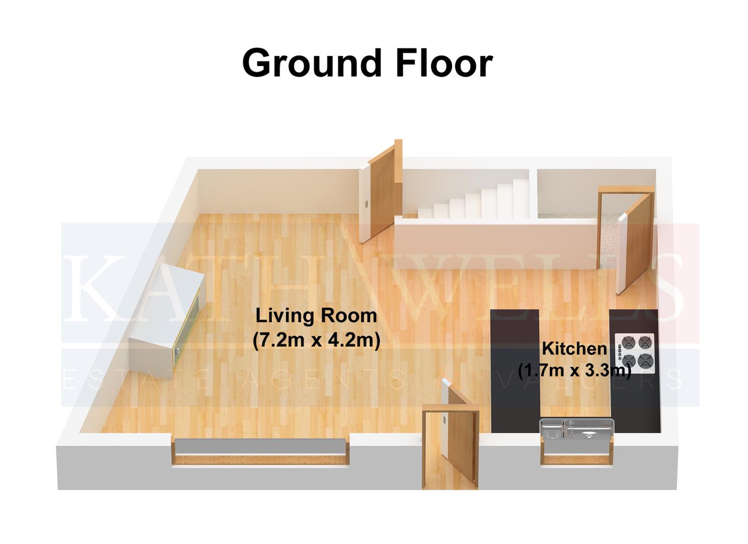 The GROUND FLOOR of the property comprises of a GOOD SIZED LIVING ROOM with ample space for a range of living room furniture & could also fit a good sized dining table & chairs & a FITTED KITCHEN which gives access to a CELLAR providing an ample amount of storage space.